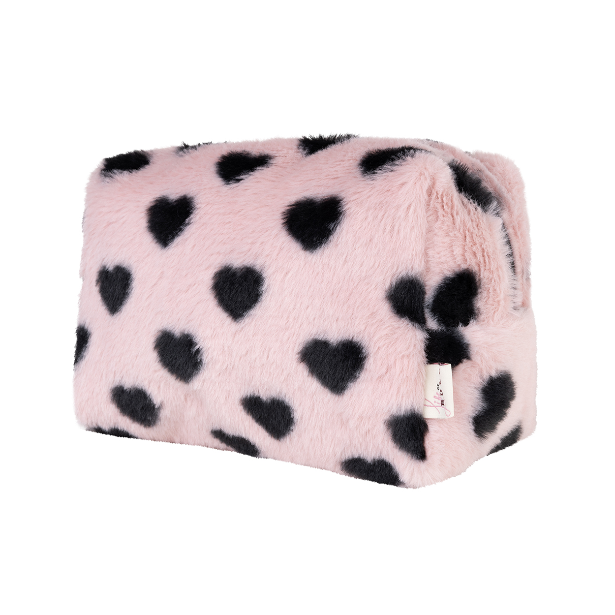 Fluffy make-up bag black hearts