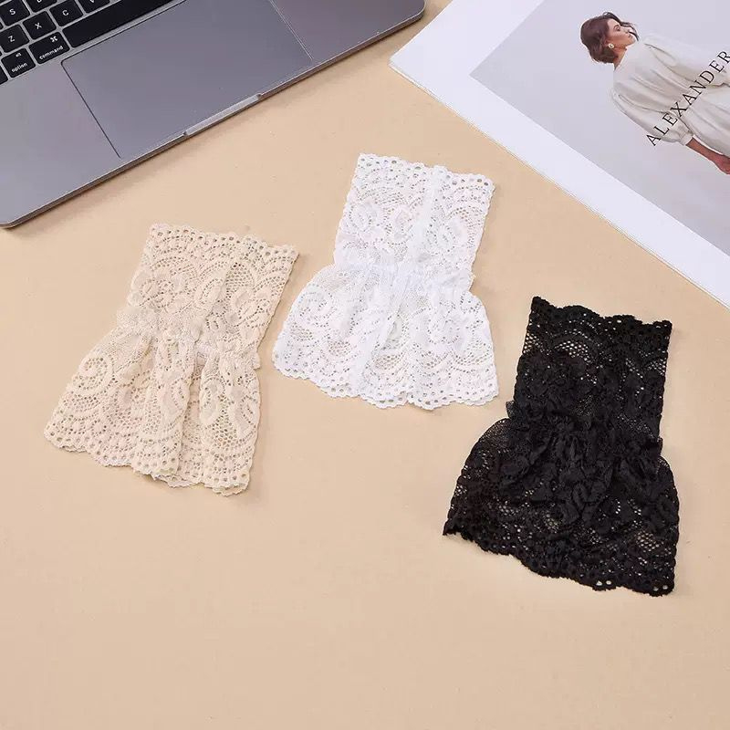 Deze kante mouwtjes zijn de perfecte toevoeging aan je outfit. Het kant is helder wit en heeft een fijne, elegante structuur. Je draagt ze gemakkelijk onder een trui, jurk of vest en creëert zo een stijlvolle laagjeslook zonder extra warmte of volume. Subtiel, vrouwelijk en ideaal om een basic outfit net wat specialer te maken.