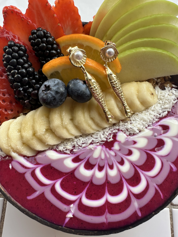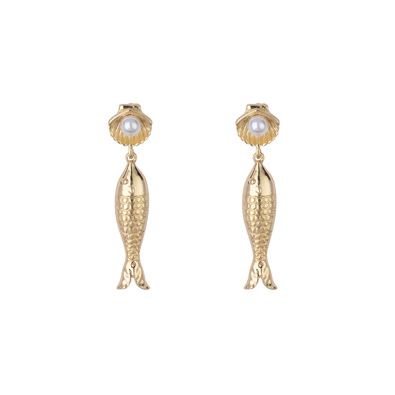 De verfijnde schelp met subtiele parel geeft een zachte, vrouwelijke uitstraling, terwijl het goudkleurige visje zorgt voor een speelse en opvallende touch. De fijne details in het ontwerp geven de oorbellen een luxe afwerking met een zomerse, maritieme vibe.